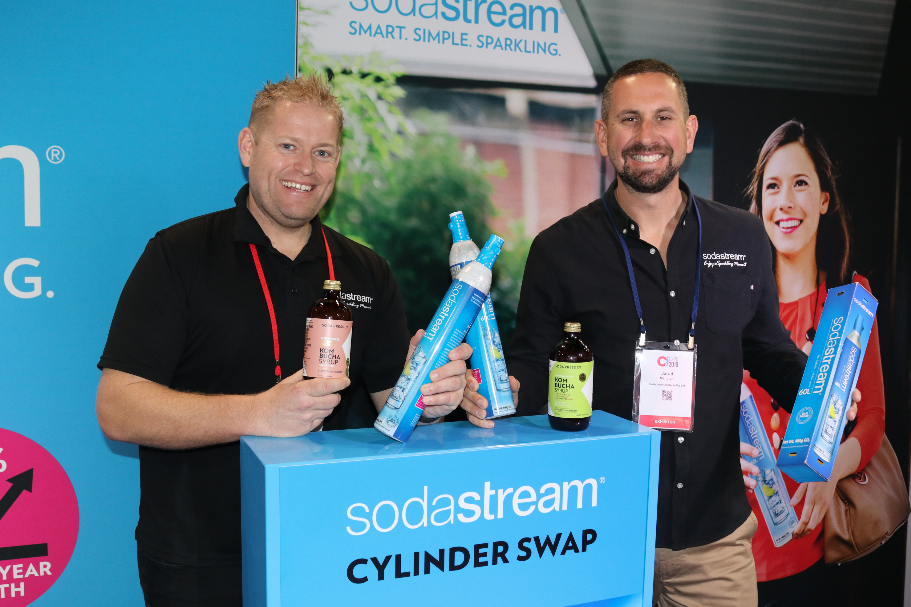 - Toby Blatchford & Jarad Mangioni from SodaStream showing off the world’s first concentrated Kombucha syrup available in Original and Cola Nut & Kaffir Lime.